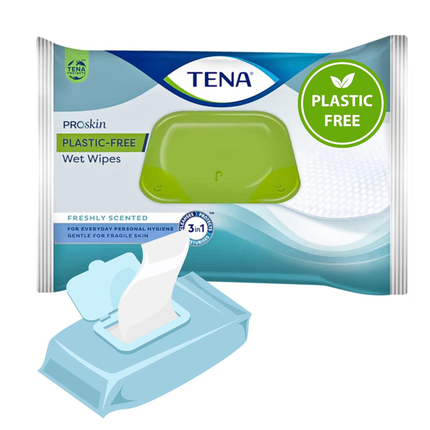 Chusteczki oczyszczające bez zawartości plastiku TENA Wet Wipe Plastic Free